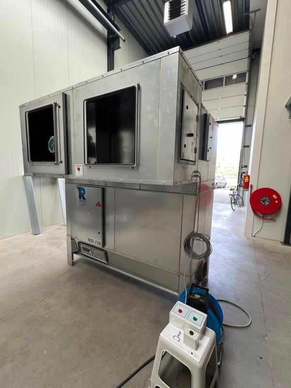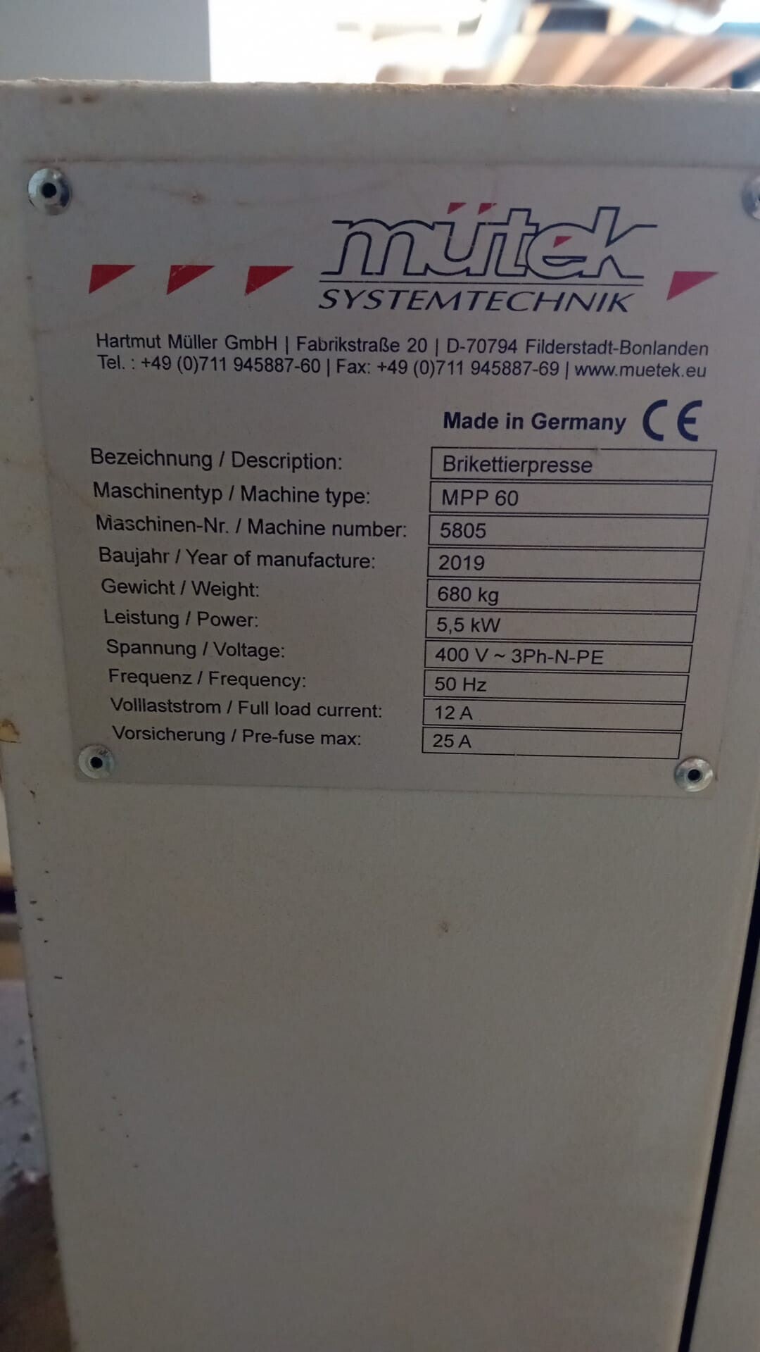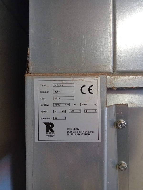 Gebruikte combinatie Riedex MD 150 in verlaagde uitvoering, met Muetek brikketteerpers MPP 60 beide 2019 bj. machine is voorzien van nieuwe filterslangen.De pers en afzuiger werken als nieuw. incl. Afstandsbediening.