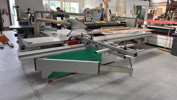 Gebruikte formaatzaag met 3 assen besturing . Incl voorrits , geremde motoren. Ce gekeurd. zaaglengte 3200 mm met voorits . Aparte motor voor de voorrits.